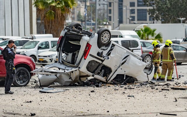 The munitions caused a building to partially collapse in Ramat Gan, while a high-voltage electricity line was damaged in the attack in Rosh Ha’ayin, causing a power outage in parts of the city.