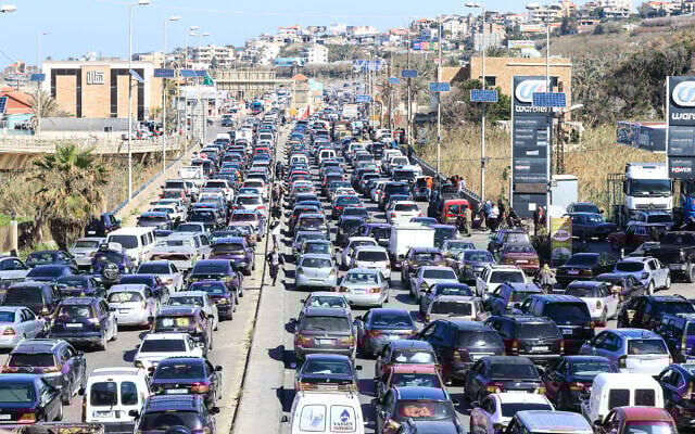 In the coastal city of Sidon, the gateway to south Lebanon, hundreds of northbound cars piled with mattresses, blankets, and children’s schoolbags crammed both sides of the two-way highway.