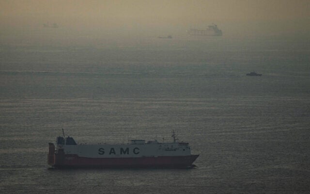 A cargo ships sail in the Arabian Gulf towards Strait of Hormuz in the United Arab Emirates, March 19, 2026. (AP Photo)